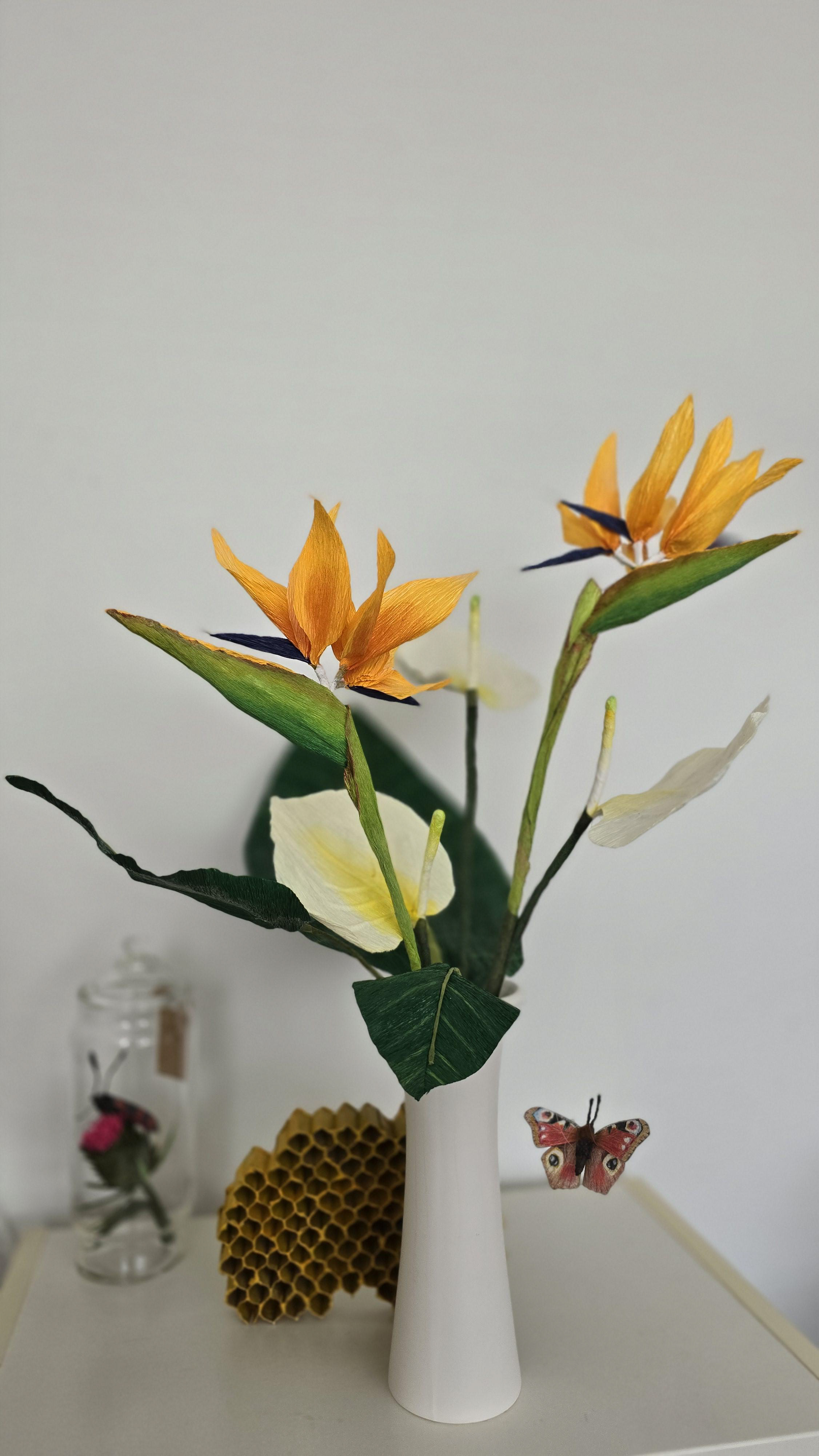 Hartelijk dank voor uw duurzame bestelling die met liefde is gemaakt. De bloemen zijn handgemaakt van (crepe) papier en bloemdraad en zijn stuk voor stuk handbeschilderd met acrylverf en afgewerkt met vernis. Hierdoor gaan de bloemen jarenlang mee en behouden ze hun oorspronkelijke kleur.